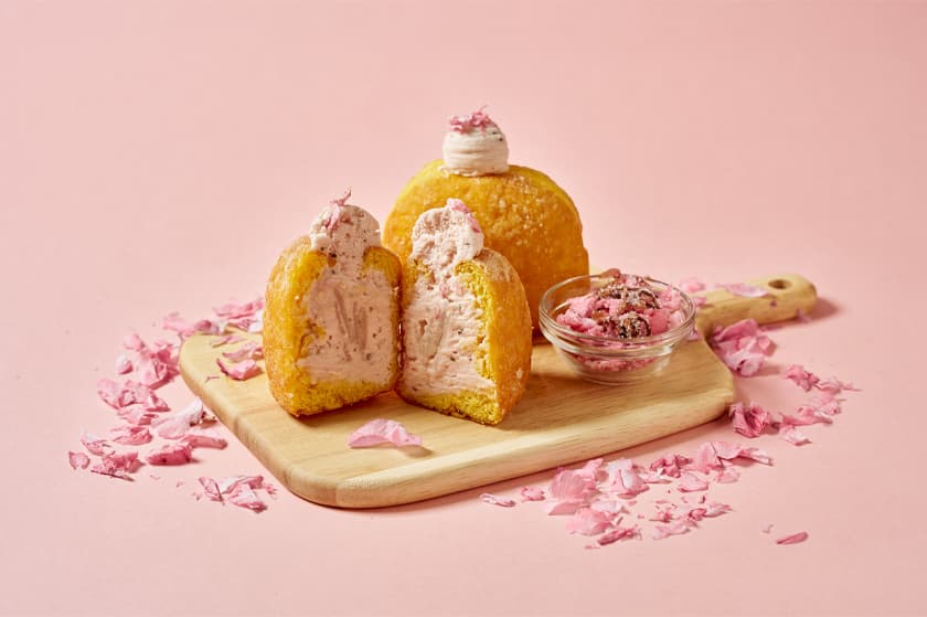 ふんわりとした生地の中に、桜餡を使用した春らしいクリームと、もっちりとした食感の求肥(ぎゅうひ)を合わせました。ひとくちで春を感じられる一品です。