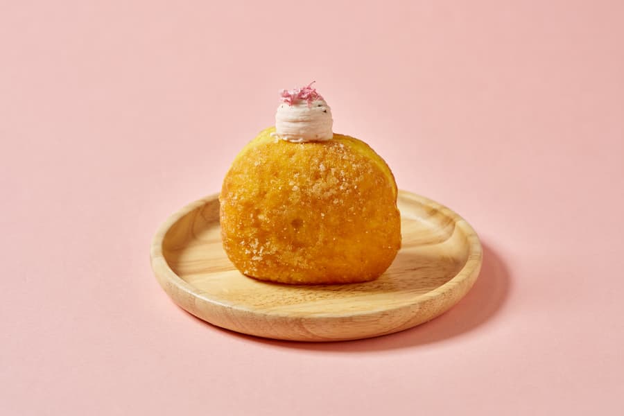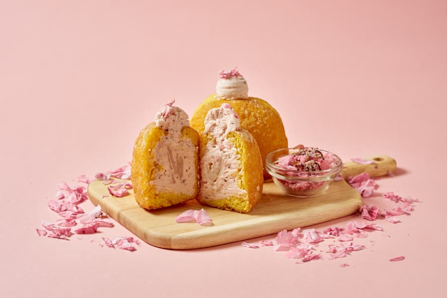 ふんわりとした生地の中に、桜餡を使用した春らしいクリームと、もっちりとした食感の求肥(ぎゅうひ)を合わせました。ひとくちで春を感じられる一品です。