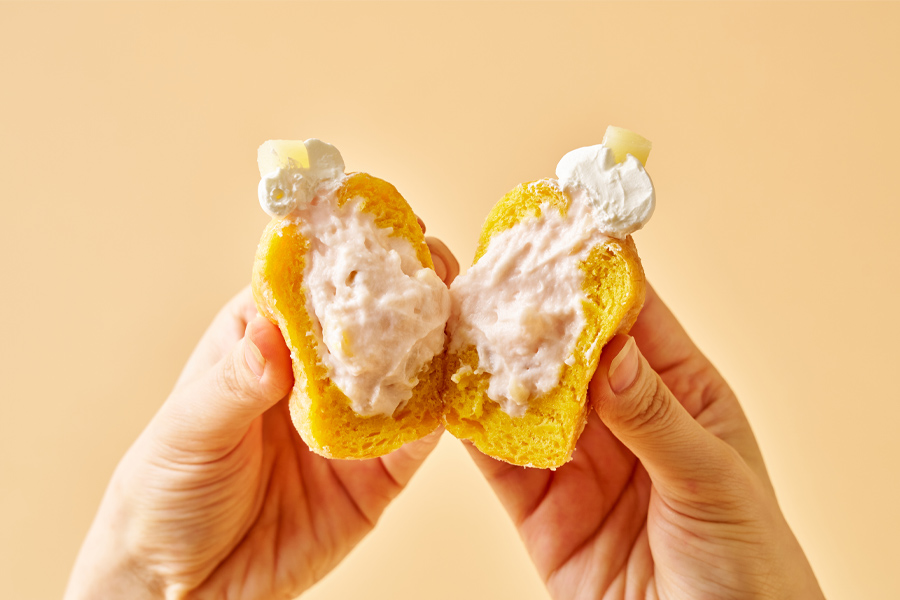 贅沢に使用した桃に、ギリシャヨーグルトを合わせたクリームを詰め込みました。